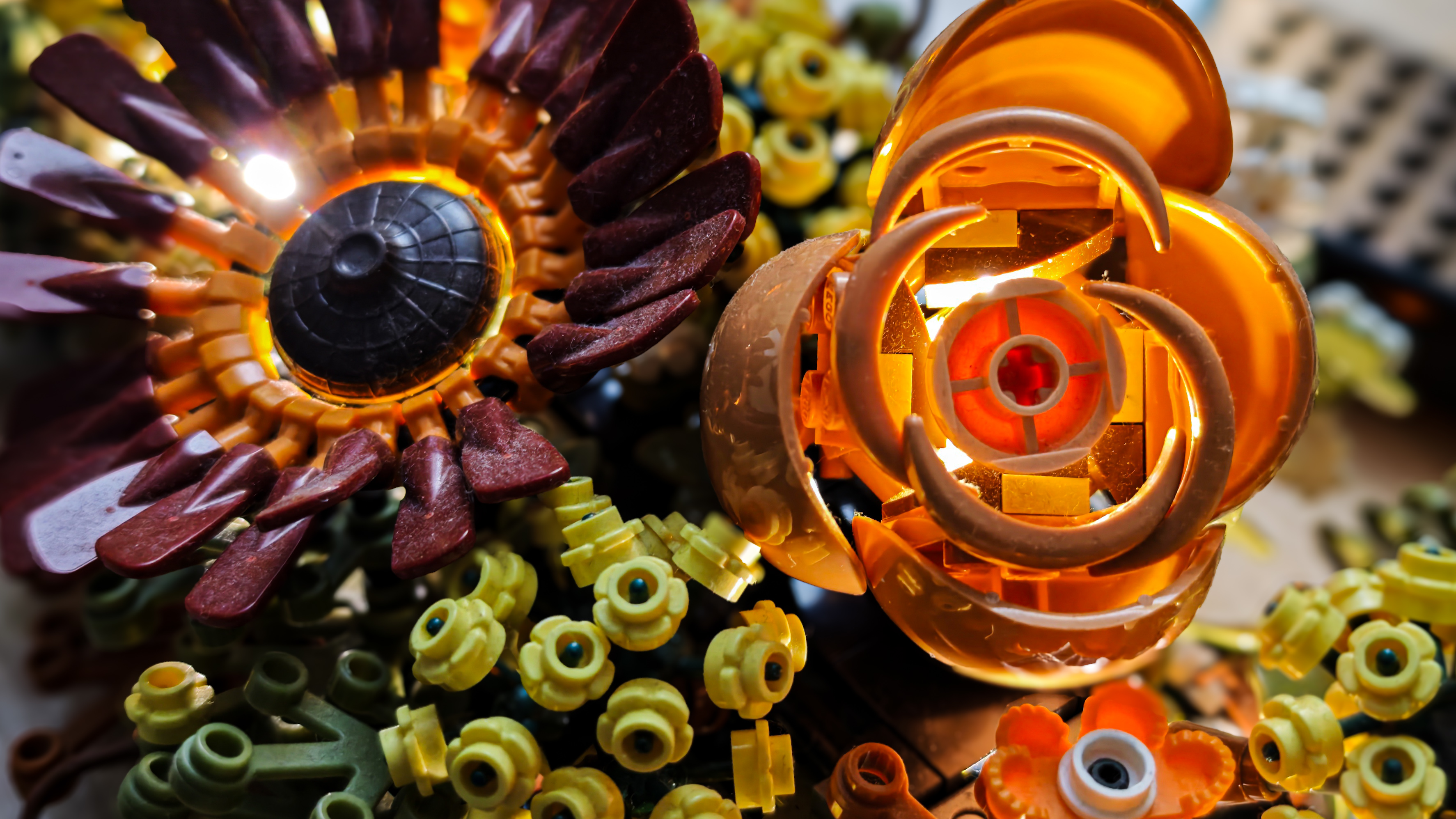 Das LEGO® Trockenblumengesteck (10314) ist schon ohne Licht ein echter Hingucker.