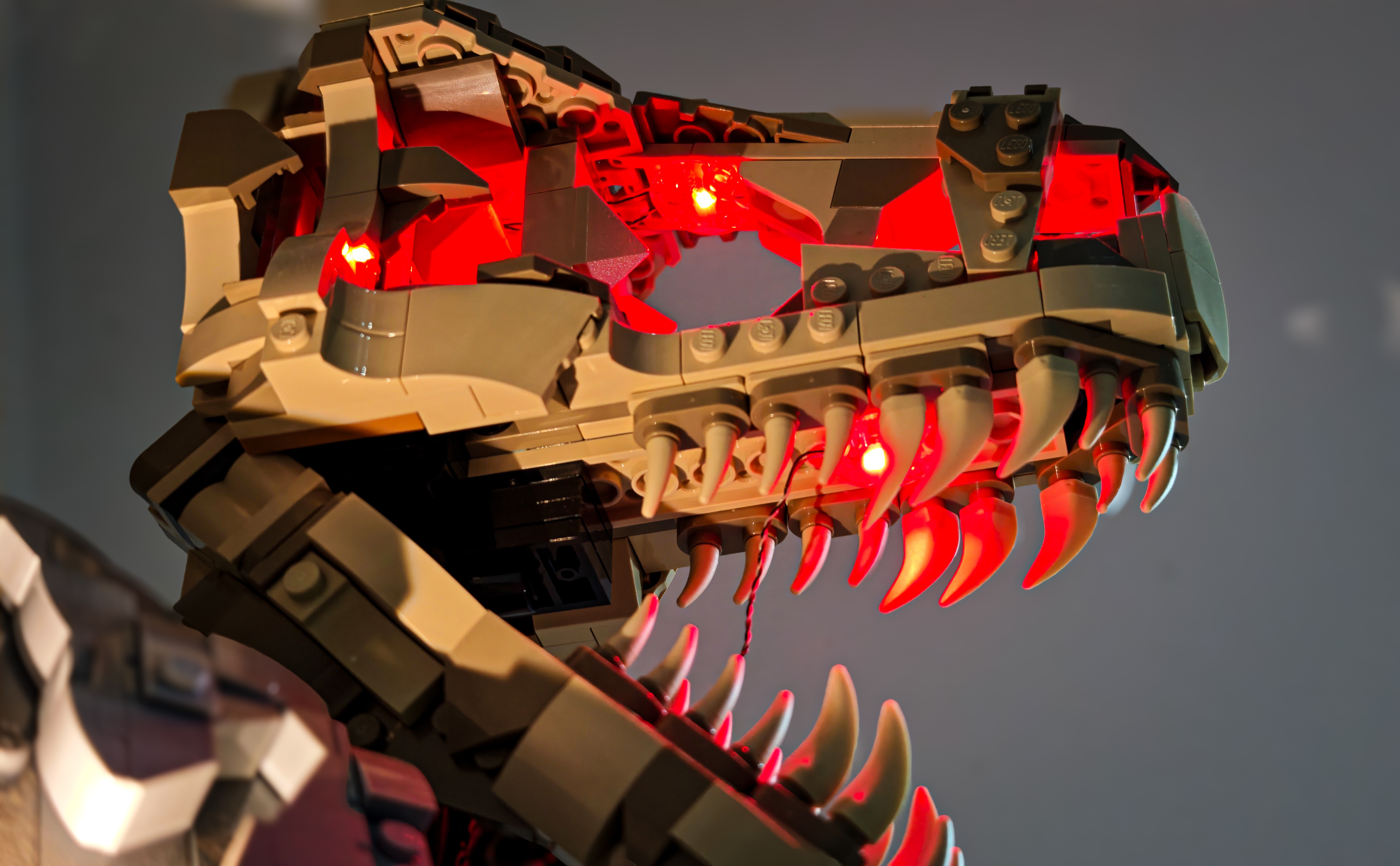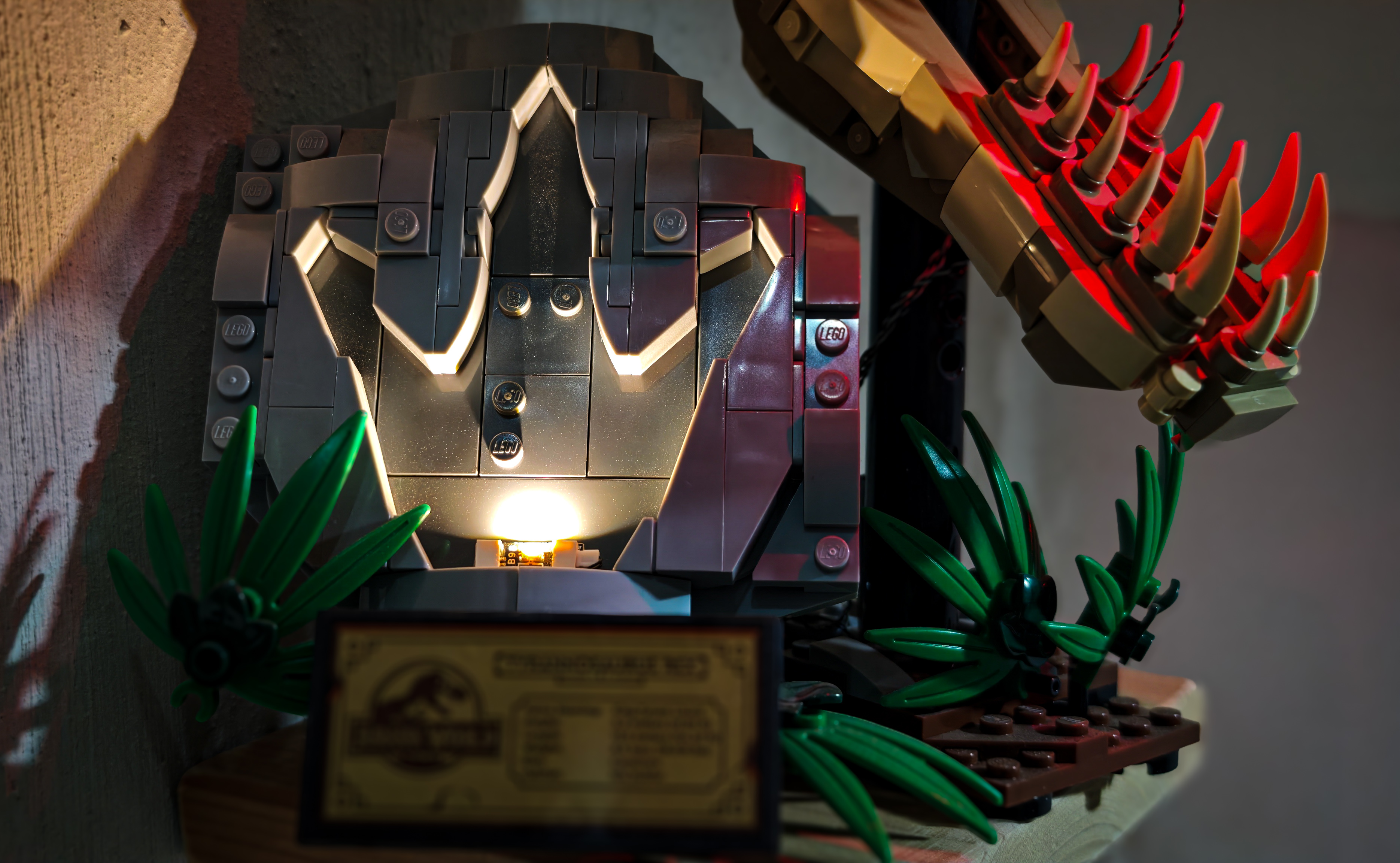 Der LEGO® T.-rex-Kopf (76964) ist als Display/Deko schon der Wahnsinn – mit Beleuchtung nochmal besser.